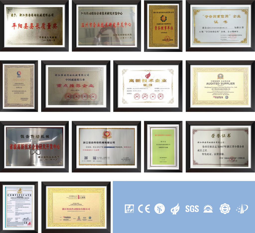 公司的主導(dǎo)產(chǎn)品有:ER、EK、EF、ES、EH/EB、EQ、EZ等12種系列產(chǎn)品,產(chǎn)品配套功率0.18~4000KW,近萬種傳動比,系列化的“恒齒”產(chǎn)品供客戶選擇。通過了ISO9001質(zhì)量管理體系、ISO14001環(huán)境管理體系、ISO45001:2018職業(yè)健康安全管理體系和歐盟CE認(rèn)證。公司堅(jiān)持科技創(chuàng)新,具有“省級高新技術(shù)企業(yè)研究開發(fā)中心”,在上海設(shè)立開發(fā)中心,致力于國際、國內(nèi)減速機(jī)設(shè)備的研制、開發(fā)和數(shù)字化設(shè)計,目前取得8項(xiàng)發(fā)明專利,56項(xiàng)實(shí)用新型專利。公司作為中國減速機(jī)標(biāo)準(zhǔn)化委員會委員單位,獲評為“國家星火計劃實(shí)施單位”、“品字標(biāo)浙江制造”、“浙江省科技型企業(yè)”、“浙江省專利示范企業(yè)”、 “中國行業(yè)減速機(jī)十大品牌”、“浙江省企業(yè)成長之星”等榮譽(yù)稱號。