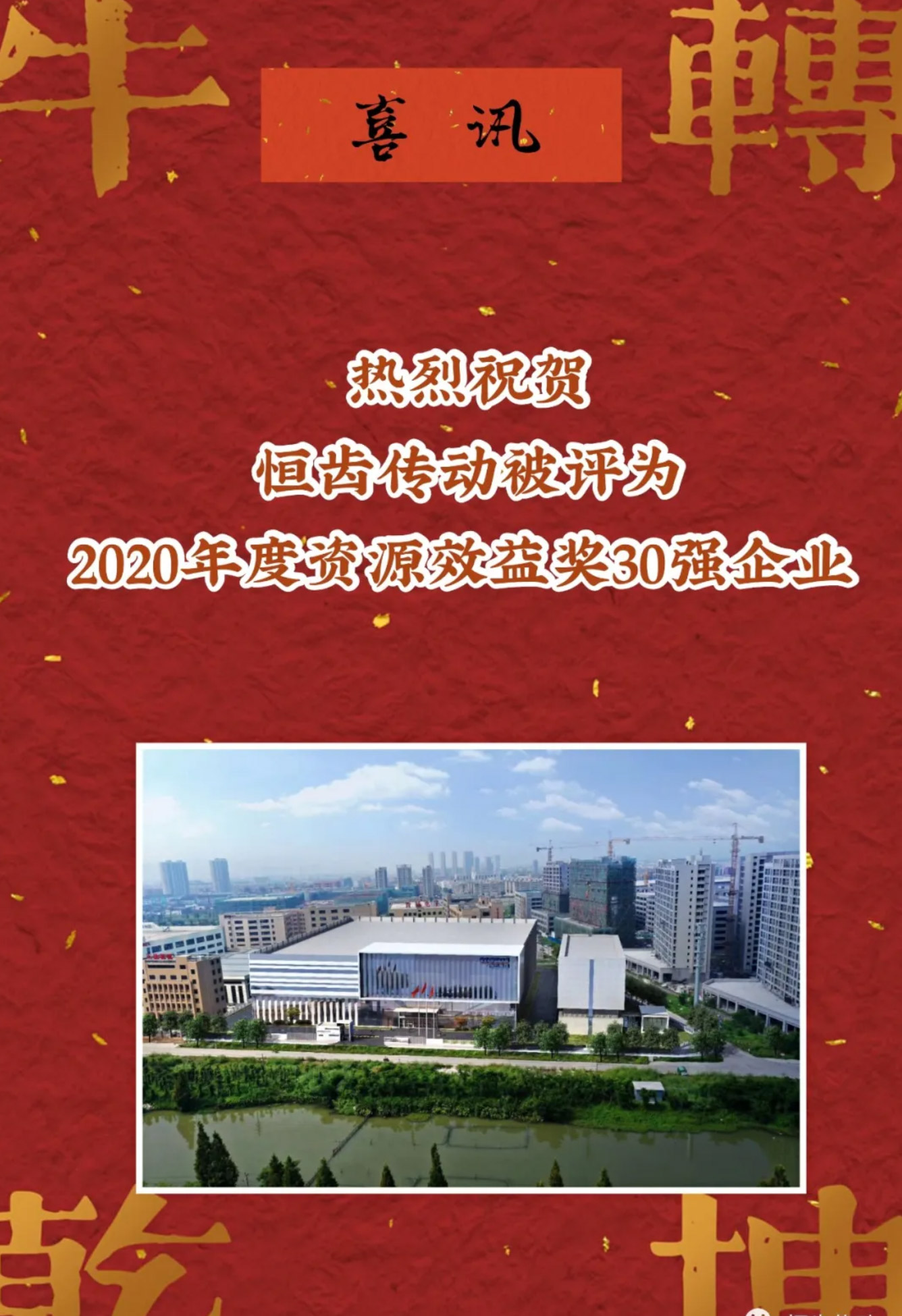 喜訊|熱烈祝賀恒齒傳動連續(xù)三年被評為資源效益獎30強